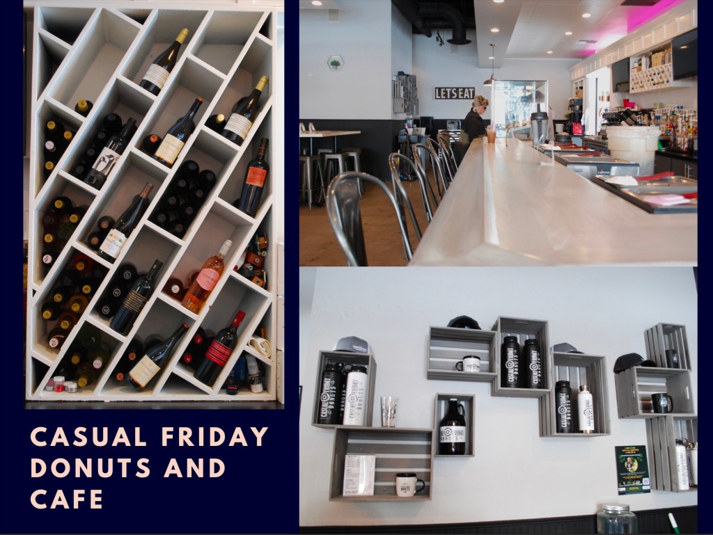 Casual Friday Donuts has a shop dedicated to donuts in North Spokane, but the location in the Valley is a full Café with lots of seating to accommodate drinks of all kinds, coffee, tea, energy drinks, beer, wine etc.