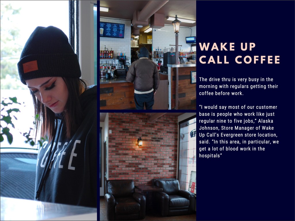 “I would say most of our customer base is people who work like just regular nine to five jobs,” Alaska Johnson, Store Manager of Wake Up Call’s Evergreen store location, said. “In this area, in particular, we get a lot of blood work in the hospitals”